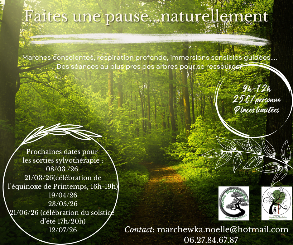 Petite pause hivernale, avec le solstice d’hiver… Au rythme des saisons, nous reprendrons fin février, début mars en fonction du renouveau de la nature. En attendant, je vais proposer des ateliers de sylvothérapie en intérieur, avec la fabrication d’objets avec les éléments de la nature, l’éveil des sens, et d’autres surprises. Dés que j’aurais trouvé un local. A suivre…